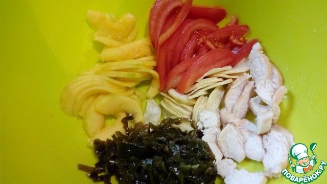 Рецепт «Салат из морской капусты с курицей и манго»:
