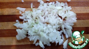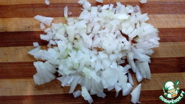 Лук почистить, порезать маленькими кубиками, ошпарить кипятком.