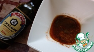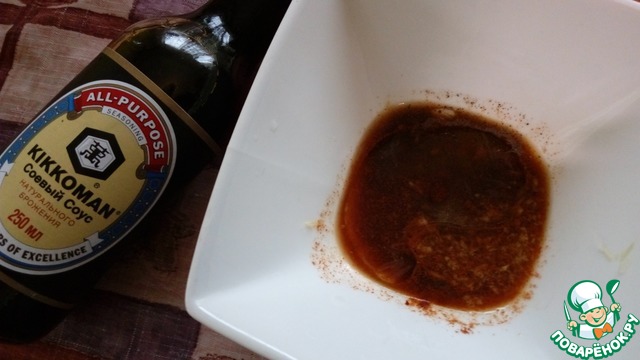 Смешать соевый соус, растительное масло, перец, паприку, лимонный сок и натертый на мелкой терке очищенный имбирь.