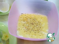 Яйца слегка взбить венчиком, добавить смесь перцев, перемешать. |