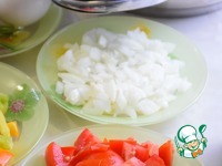 Лук порезать кубиком, помидоры - кубиком. |