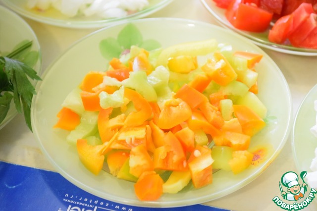 Болгарский перец порезать кубиком. |