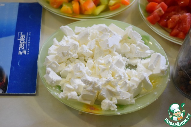 Брынзу "посечь" ножом или раскрошить руками. |