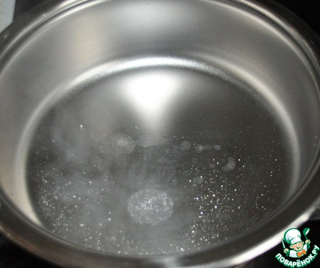 Берём сотейник Zepter, нагреваем на среднем огне (3-е деление из 6). Готовность проверяем, брызнув водой на поверхность, если вода раскатывается шариками - "жемчужинами", то кастрюля готова для работы.