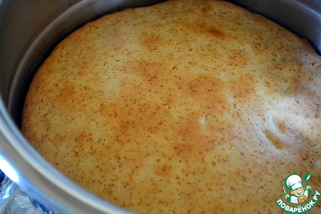 Бисквит надо сразу же горячим разрезать на 2 части. Обратите внимание, какой он пористый!