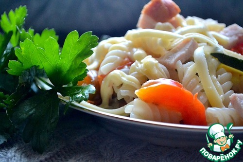 готовили этот завтрак по принципу - все, что есть под рукой+ макароны