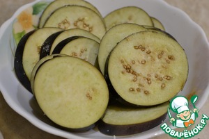 Баклажаны режем кружочками, солим и оставляем минут на 10