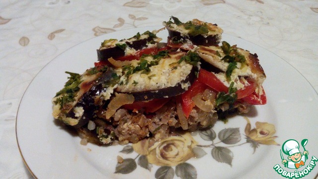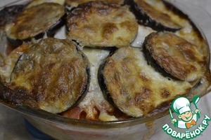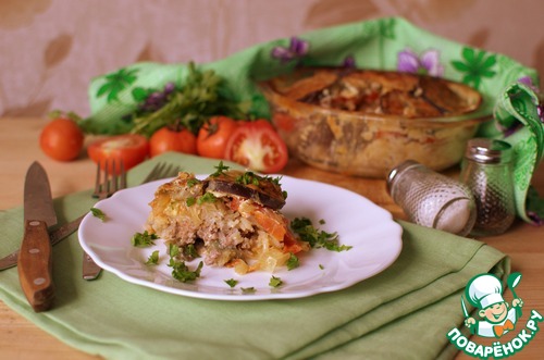 Рецепт из студенческих времен, когда интересные рецепты узнавали от подруг и из журналов и записывали в книжечки. Роль теста в этом пироге выполняют баклажаны. Форму для пирога лучше брать глубокую- вынимать труднее, но пирог очень сочный и при запекании выкипает. Пирог не очень фотогеничный, но очень вкусный и сытный. Ингредиенты на форму диаметром 15см.