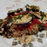[+5]Сделала со своими небольшими изменениями: фарш уже был перемешан с рисом, под слой помидоров добавила красный болгарский перчик колечками, а в сметанно-сырную заливку положила чесночок для аромата. Получилось очень вкусно!!! Только в нашем меню это скорее запеканка, а не пирог. Но сути это не меняет)))