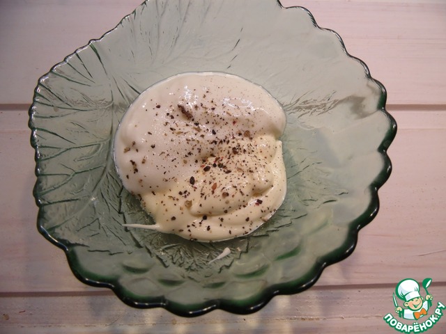 Для заправки. майонез смешать с йогуртом, посолить, поперчить по вкусу.