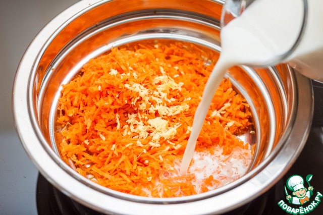 В морковь влить молоко, перемешать