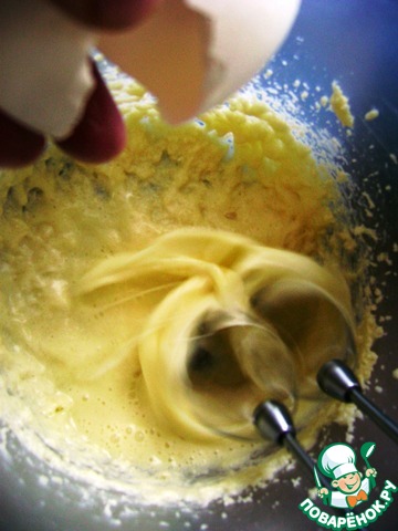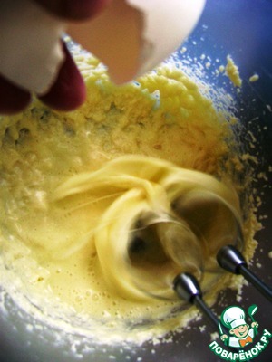 Размягченное масло взбить с сахаром. Добавить по одному яйца, не прекращая взбивать смесь до полной однородности.