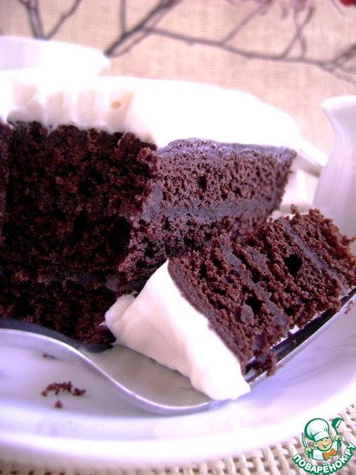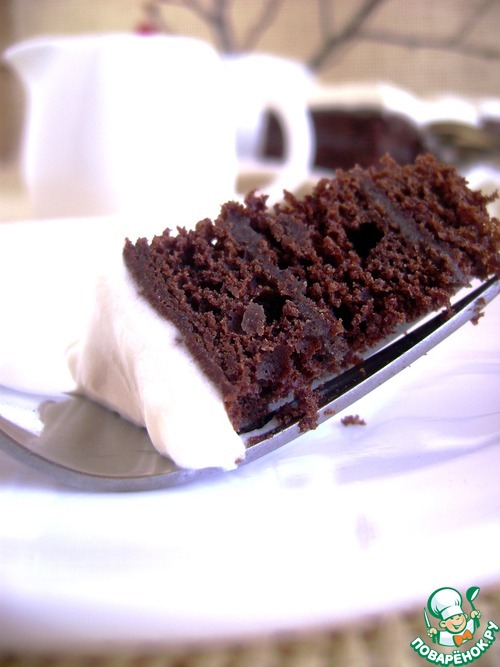 Корж выпекала на противне, затем просто разрезала на 3 части. В прослойку использовала горький шоколад.