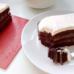 Перед подачей взбить холодную сметану с сахаром и миндальным экстрактом в пышный крем и покрыть верх торта. Нарезать на порционные кусочки, протирая острый нож перед каждым срезом.