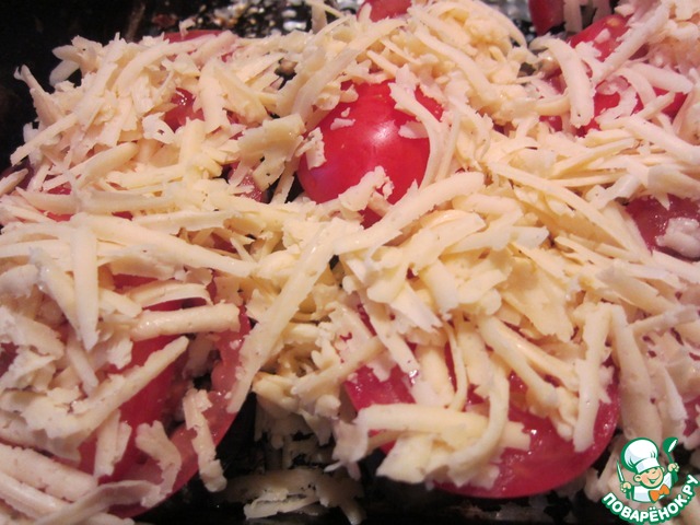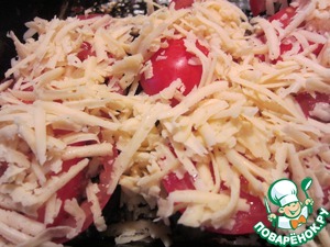 Засыпаем все тертым сыром и запекаем 20 минут на 200 гр.