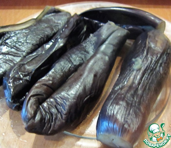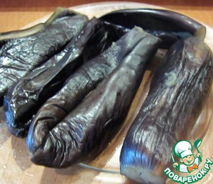 Баклажаны целиком без плодоножки опустить в хорошо посоленную кипящую воду и бланшировать около 7 минут небольшие, если у вас крупный баклажан до 10 минут. Откинуть на сито и дать им остыть.