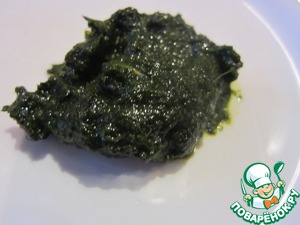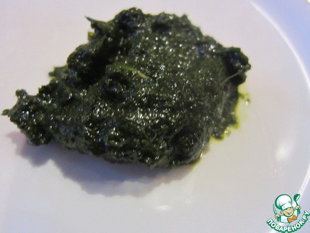 Берем по пучку Базилика зеленого и кинзы добавляем чеснок, соль по вкусу и все измельчаем в пасту