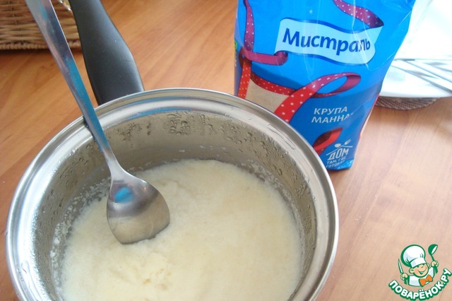 Варим очень густую кашу. Кашу лучше сварить заранее, чтобы она хорошо остыла. Кладём в молоко сахар и соль. Это по вкусу. Я не очень сладкую кашу сварила, т к будут котлеты поливаться киселём.