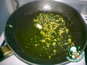 Делаем зажарку из чеснока + мяты + масло подсолнечного, жарим 1 минуту.