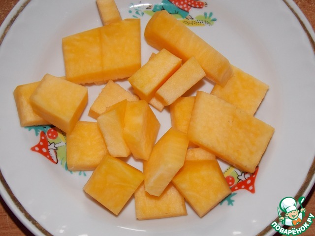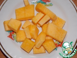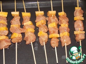 На деревянные шпажки надеть филе, чередуя с тыквой.