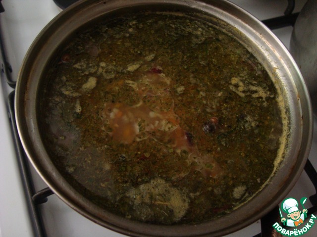 Варим суп 15 минут и выкладываем специи. В супах очень люблю сухие петрушку и укроп. У них другой вкус, чем у свежих. Наливаем масло оливковое. Варим 3-5 минут и снимаем с огня.
