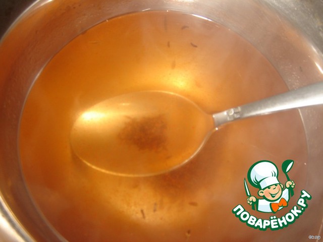 Приготовить маринад, вскипятив воду с сахаром, солью и тмином. Добавить немного острого перца (1/2 или 1/4 ч.л.) и столовый уксус. Уксус можно заменить лимонным соком.