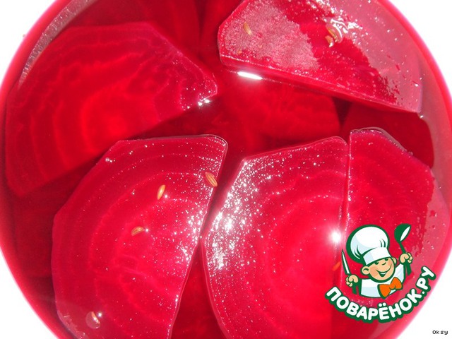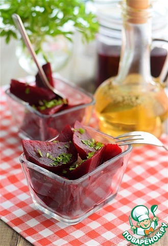 Залить полученным маринадом свеклу и дать ей промариноваться 1-2 дня.