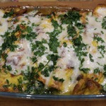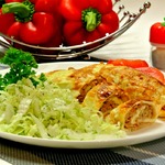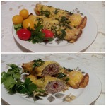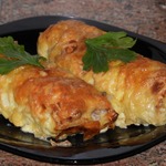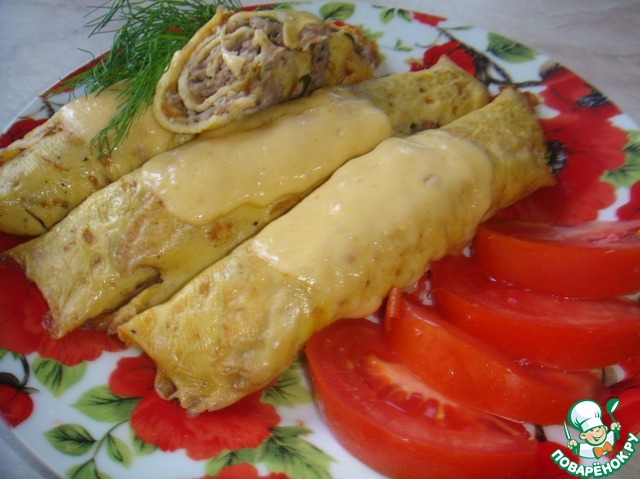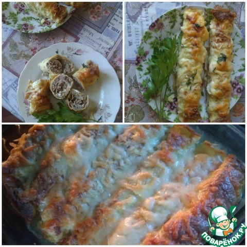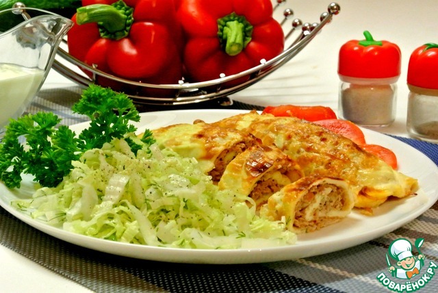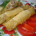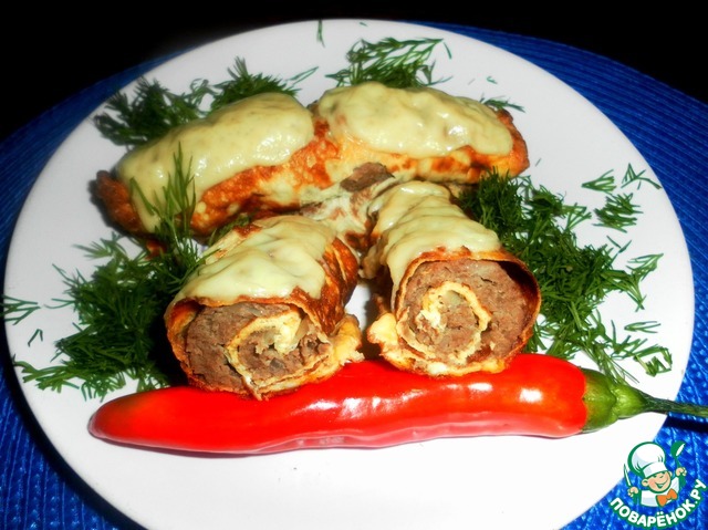 [+5]Я сделала его ещё диетичней, яичные блинчики готовила без масла и молока больше добавила, фарш из курогрудки с большим количеством лука, запекала со сметанкой.