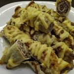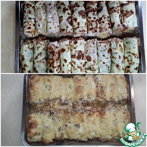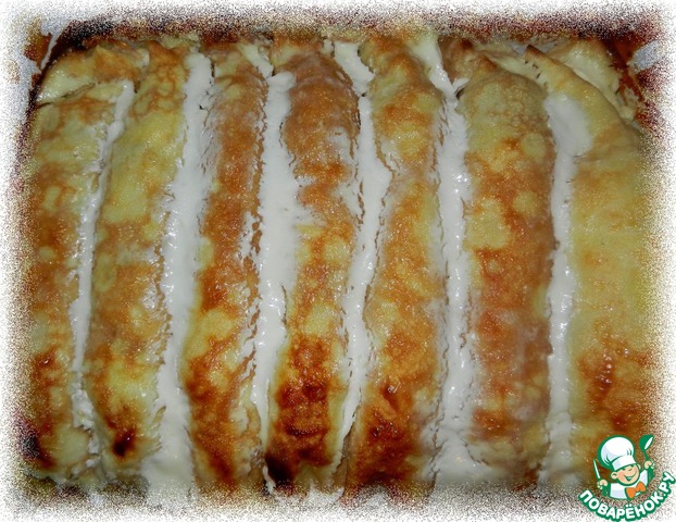 размер сковородки выбираем так, чтобы скрученный блинчик легко поместился в форму для запекания