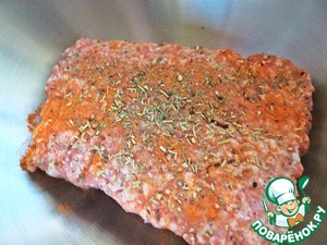 Из горбушки белого хлеба вынуть мякиш, зашпарить водой, выложить в фарш.