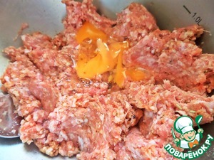 Порубить широким ножом и высыпать к фаршу. Смешать. В идеале фарш должен настояться несколько минут.
