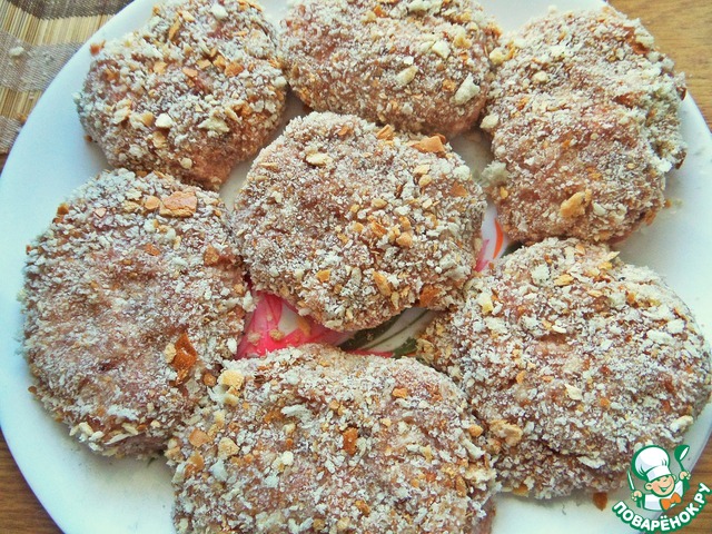 Смачиваем в миске с холодной водой пальцы и формируем котлеты. Переносим в сухари (у меня домашние).