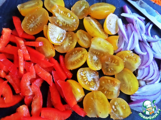 На гарнир отвариваем рис (у меня пропаренный, золотистый).