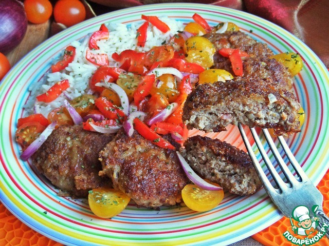 Рецепт «Котлеты "Беконистые" с салатом и рисом»: