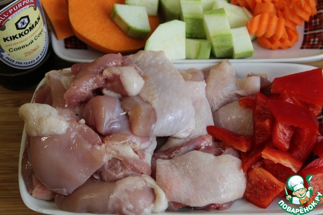 Ингредиенты для «Курица, запеченная с овощами и булочками»: