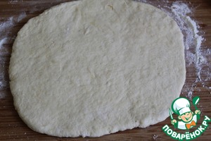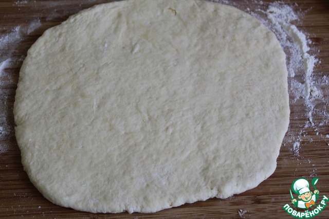 Раскатать тесто в круг толщиной 5 мм.