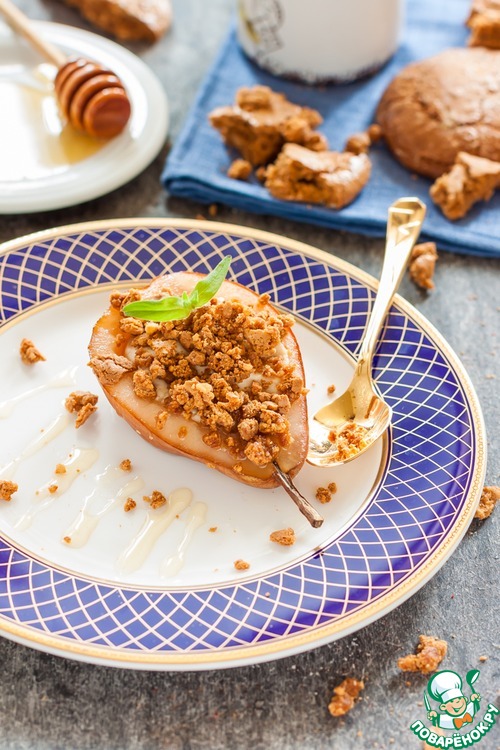 Рецепт «Десерт из груши с творогом и печеньем»: