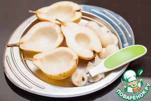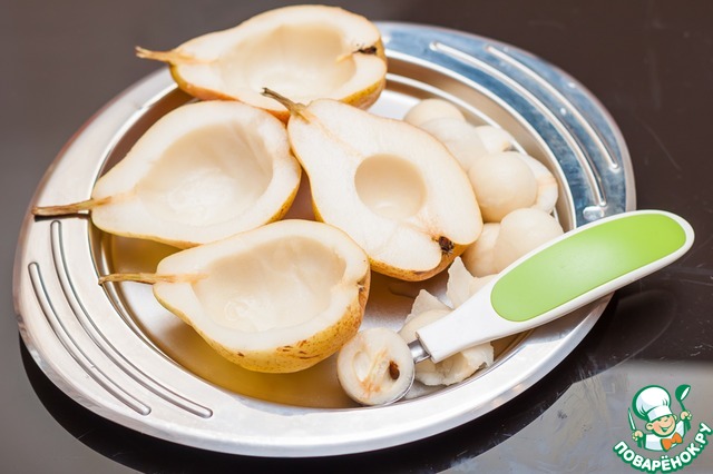 Груши разрезать пополам, нуазеткой вынуть немного мякоти