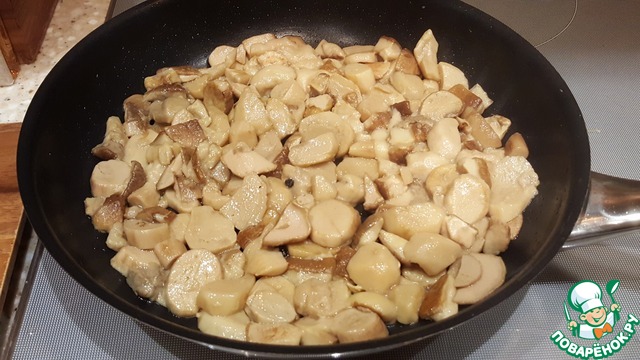 - Грибы (Белые, резаные отварные замороженные) — 0.8 л