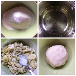 Вымешиваем тесто ложкой, а затем руками - осторожно горячо.