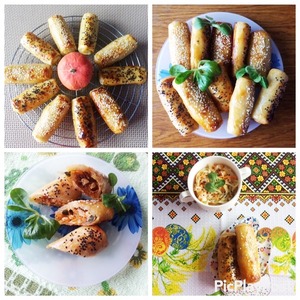 Предлагаю вариант закусочных трубочек/пирожков/пл ацинд, можно назвать по-разному, но вкус будет отличным. На мой взгляд, готовятся легко и просто, а в результате, сытые и довольные домочадцы или неожиданные гости.