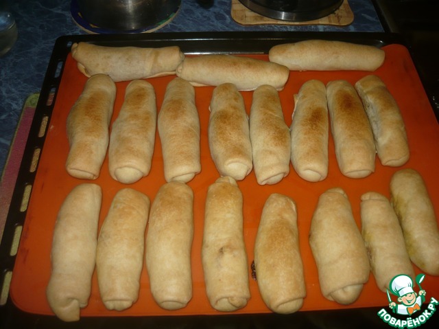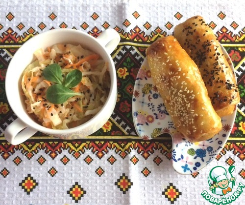 Готовые трубочки немного остужаем и подаем к столу со свежими овощами или с квашенной капустой. Очень вкусно!