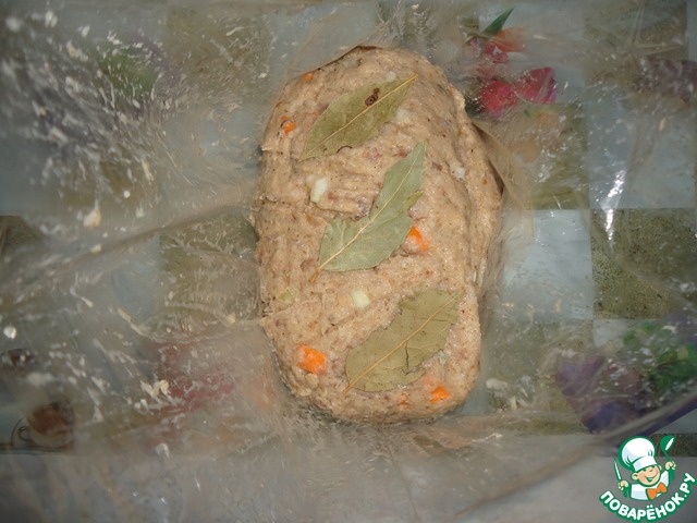 Выложить полученную массу в пакет для запекания, сверху уложить листы лавровые.
