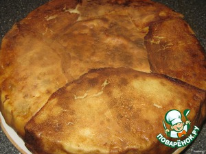 Блины положить в форму для запекания так, чтоб концы свешивались. Один блин уложить на середину.
