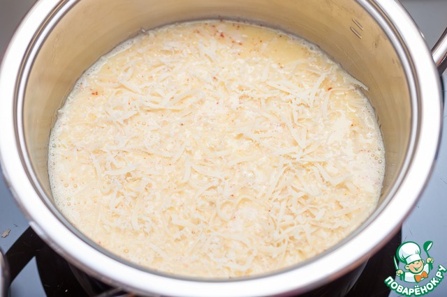 Слой сыра равномерно покроет наш будущий омлет.