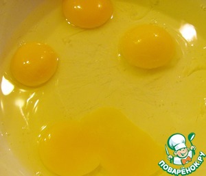 В миску, где будем готовить основную массу, разбиваем 4 яйца.