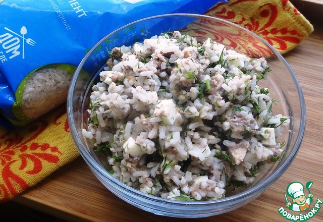 Смешать его с рубленным яйцом, мелко порезанным укропом и сайрой. Я дополнительно не солю, а вообще, это дело вкуса.