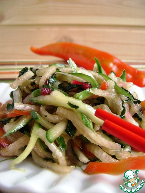 Интересный салат. Острый, сочный и витаминный. Готовится быстро, получается вкусно.