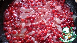 Когда лук начнет становиться прозрачным, положить в сковороду ягоды. Добавить 2 столовые ложки соевого соуса и тушить до загустения около 15 минут.