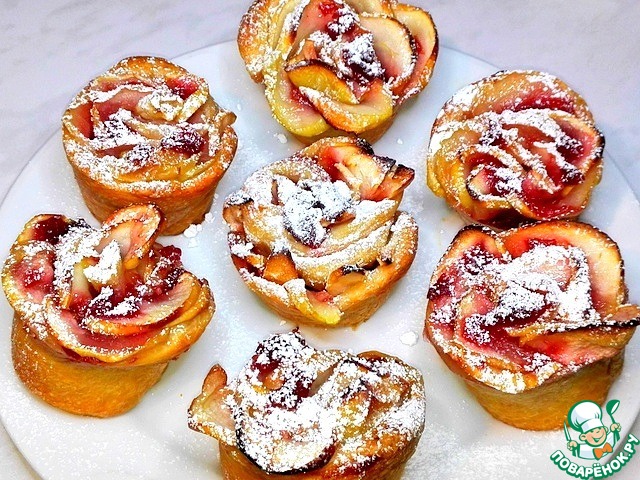 Рецепт «Булочки "Розочки" с яблоками и повидлом»: